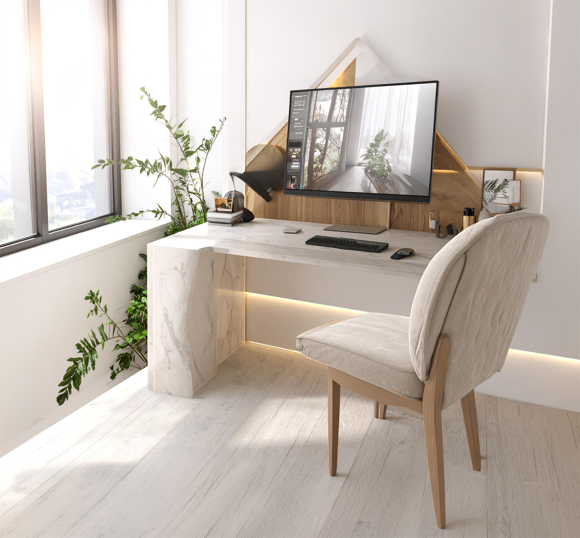 Calm and purpose with natural light and neutral tones.Result: